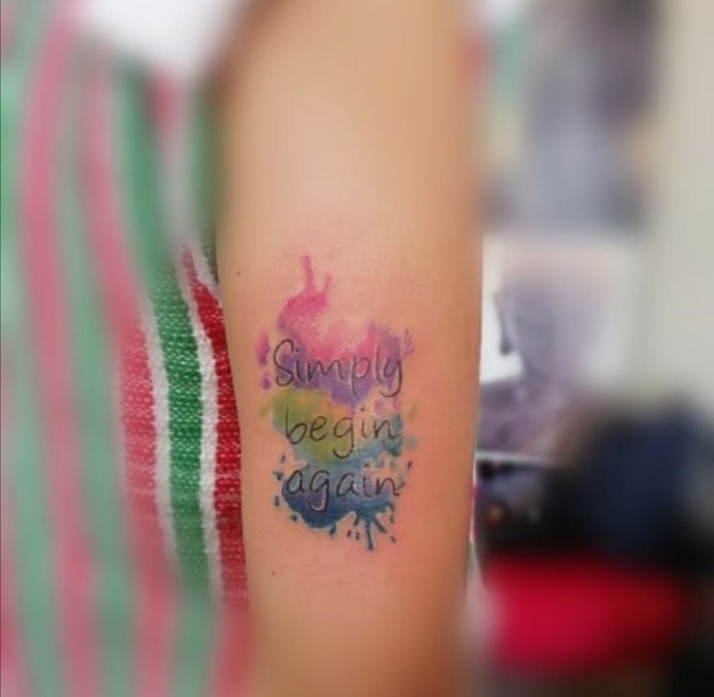 Desde en ese entonces «Simplemente empieza de nuevo» forma parte de mi vida (y de mi piel jajaja (aunque el tatuaje decidí hacérmelo mas adelante)). Que si dejo de hacer ejercicio por equis o ye razón, simplemente comienzo de nuevo. Que si tengo un día en el que la codependencia está a flor de piel, pues simplemente comienzo de nuevo. Que si tengo un día en el que odio a todo el mundo, pues simplemente comienzo de nuevo. Y asi, desde lo mas pequeño hasta lo mas grande.